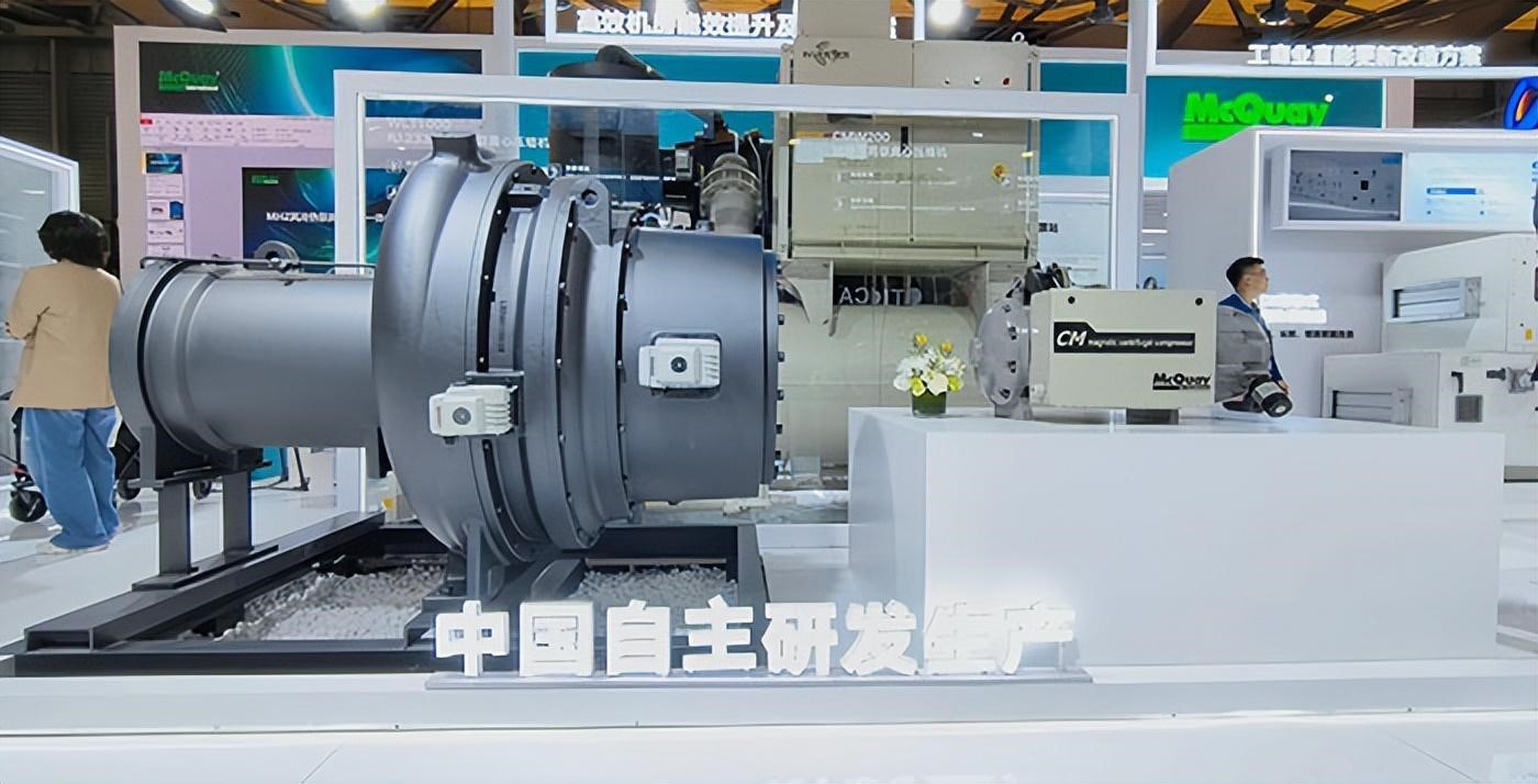 (圖:2025年中國制冷展(上海)麥克維爾展出蘇州技術研究院研發(fā)的 WLT負壓環(huán)保冷媒壓縮機和CMW磁懸浮離心壓縮機)